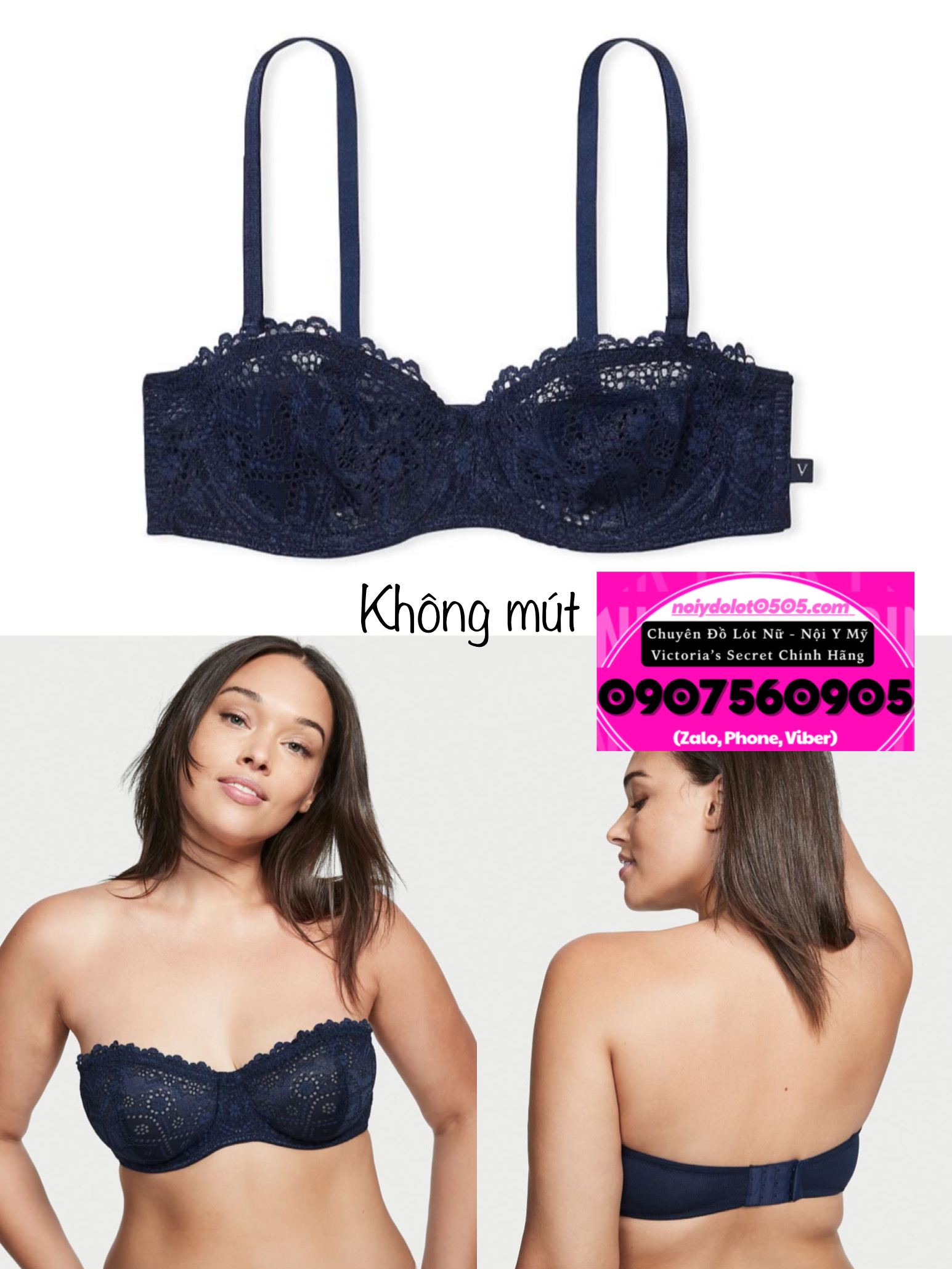 Áo Lót Victoria’s Secret Sexy Tee Eyelet Lace Unlined Strapless Bra