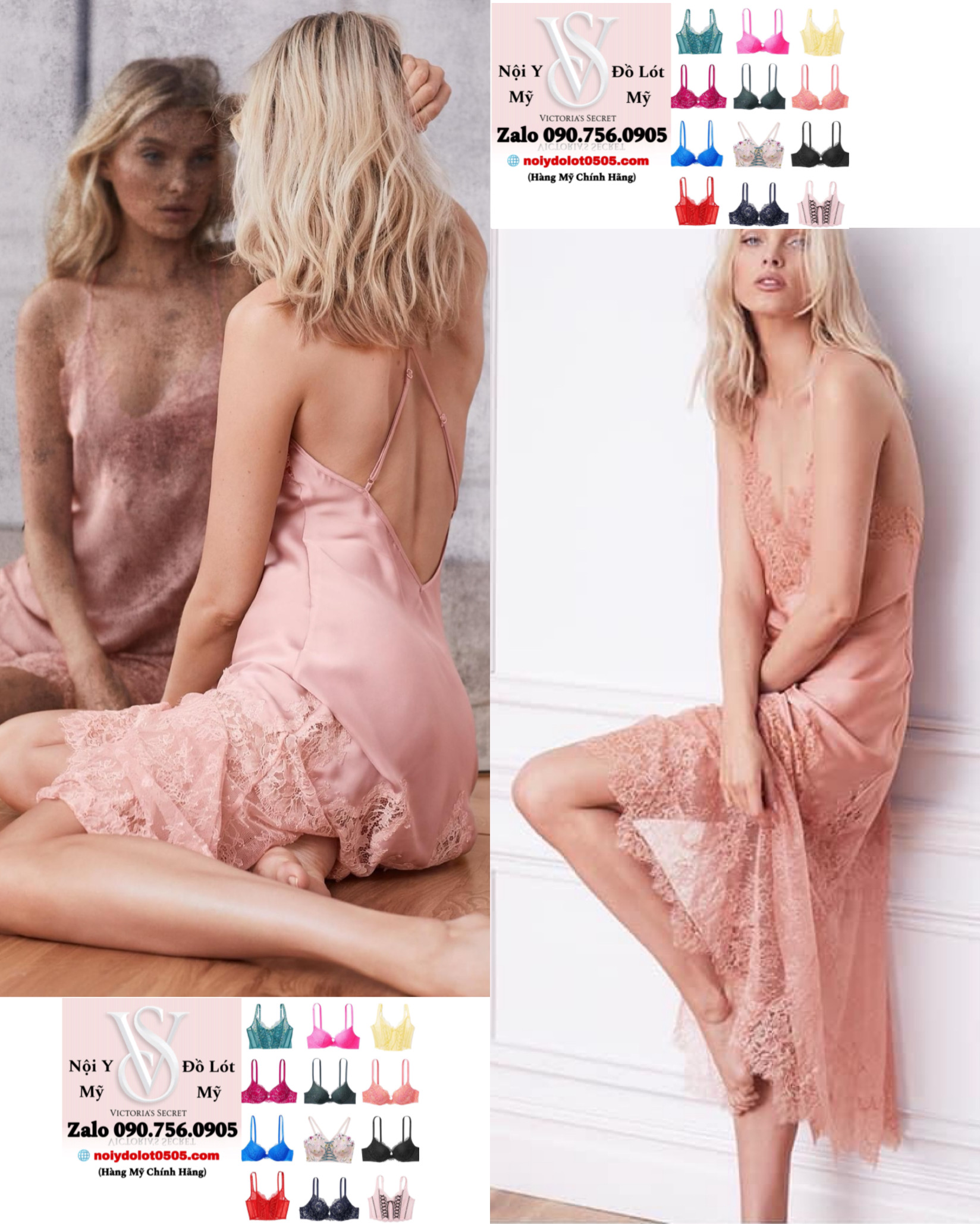 Đầm Váy Ngủ Victoria’s Secret Sleepwear and Lingerie Satin & Chantilly Lace Long Slip