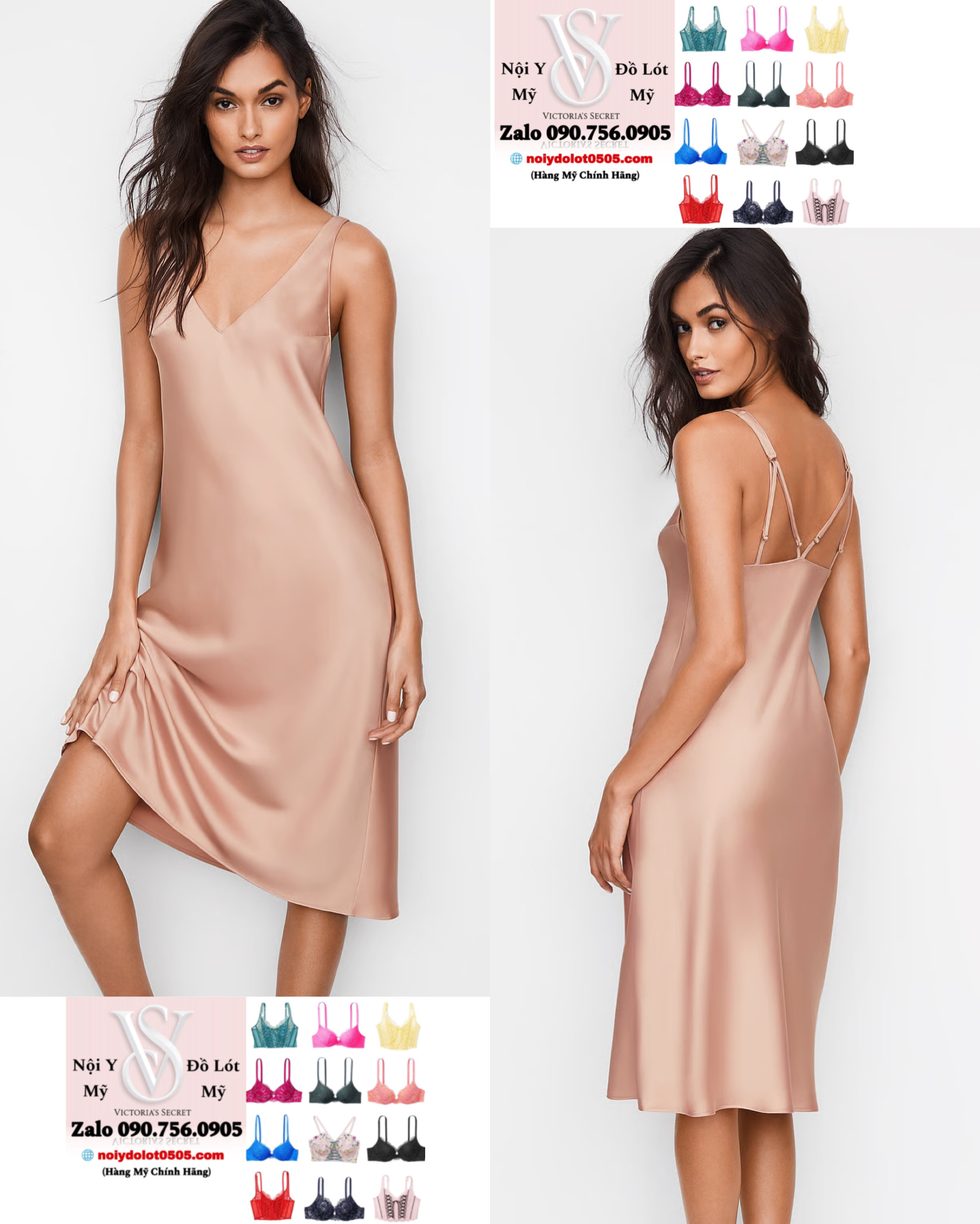 Đầm Váy Ngủ VICTORIA’S SECRET Sleepwear and Lingerie Dream Angels Luxe Satin Midi Slip