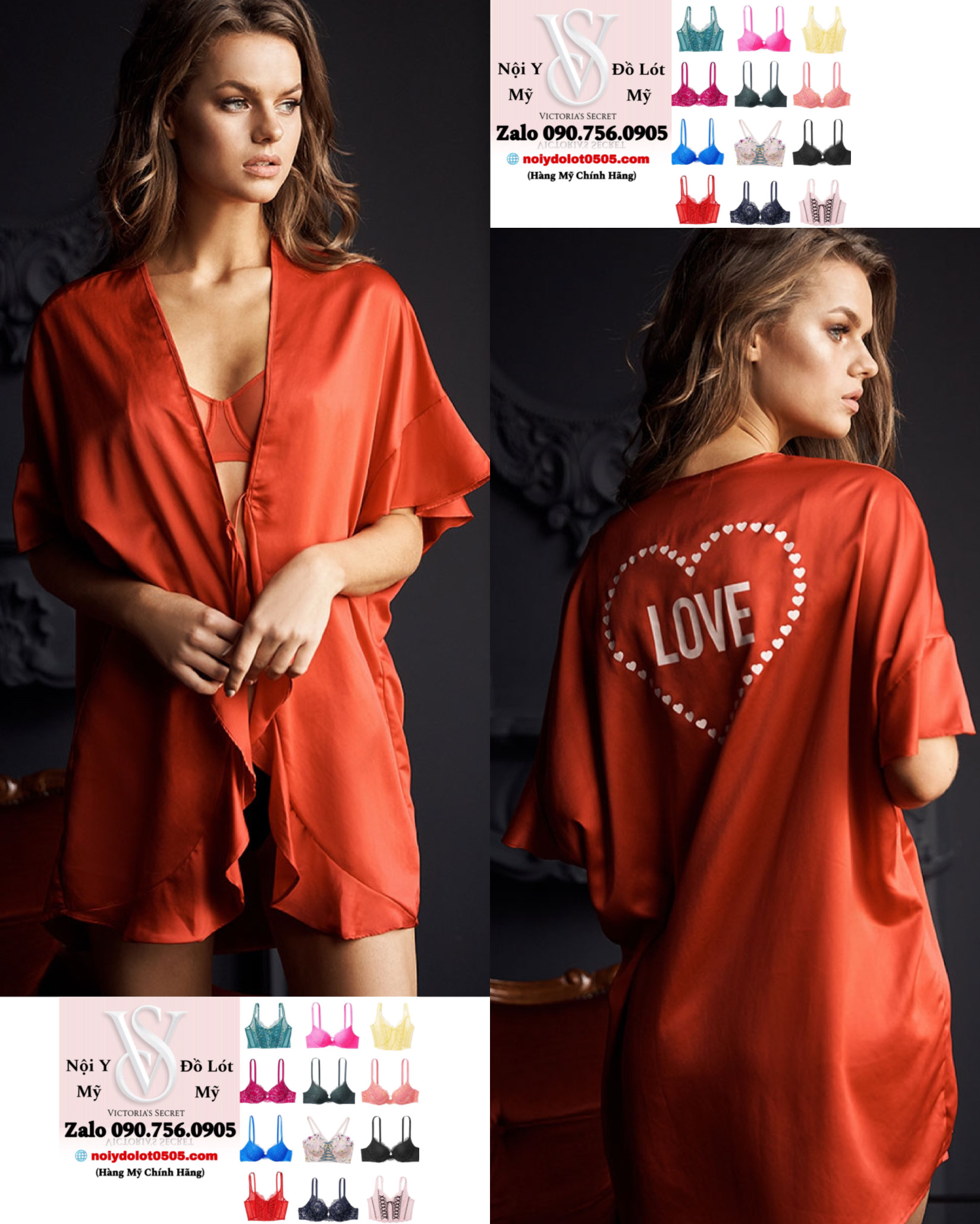 Áo Choàng Kimono Victoria’s Secret Sleepwear and Lingerie Flutter-sleeve Satin Kimono